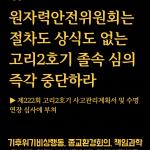 [성명] 원자력안전위원회는 절차도 상식도 없는 고리2호기 졸속 심의를 즉각 중단하라 - 제222회 고리2호기 사고관리계획서 및 수명연장 심사에 부쳐
