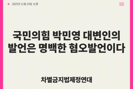 [차별금지법제정연대 논평] 국민의힘 박민영 대변인의 발언은 명백한 혐오발언이다.