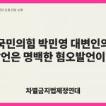 [차별금지법제정연대 논평] 국민의힘 박민영 대변인의 발언은 명백한 혐오발언이다.