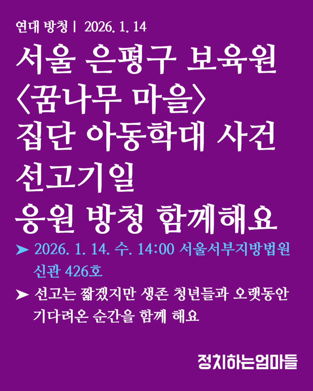 [정치하는엄마들 | 아동학대대응] 서울 은평구 보육원 〈꿈나무마을〉 집단 아동학대 사건 선고기일