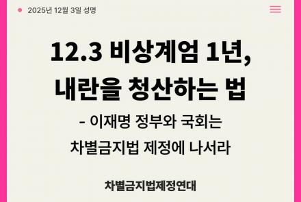 [차별금지법제정연대 성명] 12.3 비상계엄 1년, 내란을 청산하는 법 - 이재명 정부와 국회는 차별금지법 제정에 나서라!