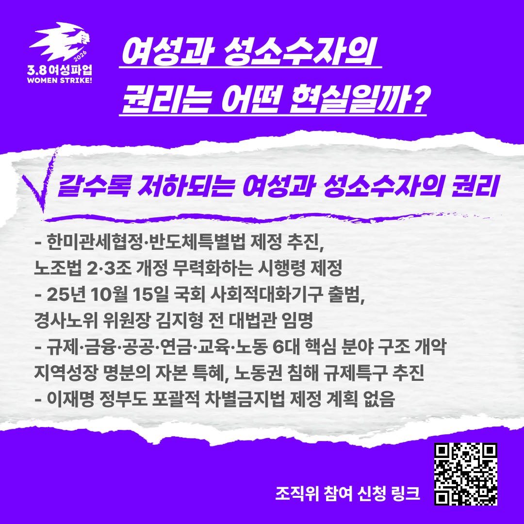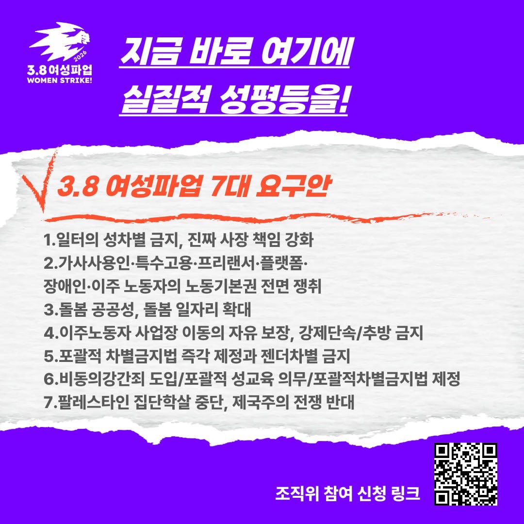 ![[차별금지법제정연대] 💜2026년 3.8 세계여성의 날 기념 제 41회 한국여성대회💜](https://dundfzenyoyeexdkarpp.supabase.co/storage/v1/object/public/media/uploads/2026/03/image-1772524796820.jpeg)