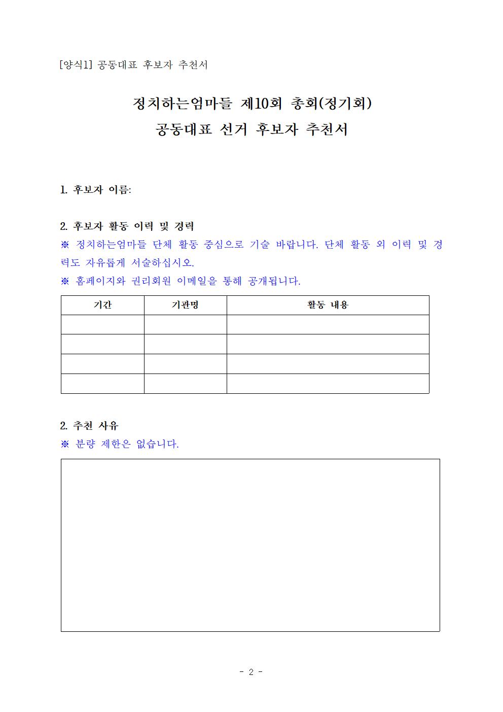 - 추천서 제출 및 문의: act@politicalmamas.kr (사무국장 010-3693-3971)