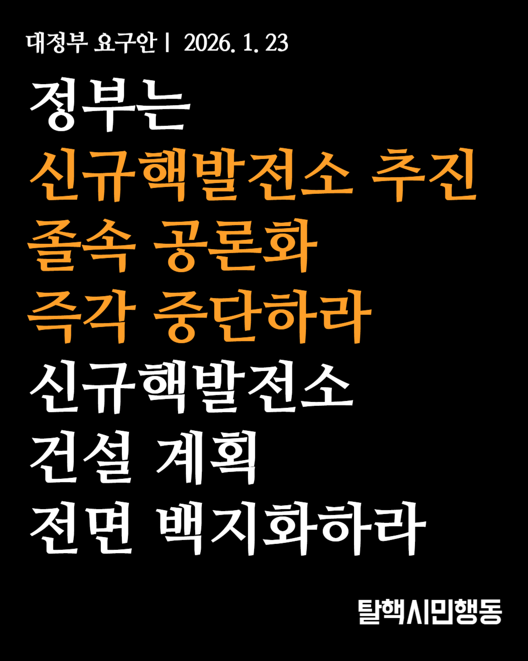 [성명] 기후에너지환경부의 신규 핵발전소 건설 강행 발표 규탄 "이재명 정부, 핵발전소 확대 정책을 즉각 중단하라"