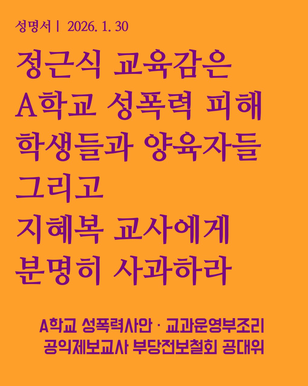 [보도자료] 정근식 교육감은 A학교성폭력 피해학생들과 양육자들, 그리고 지혜복 교사에게 분명히 사과하라