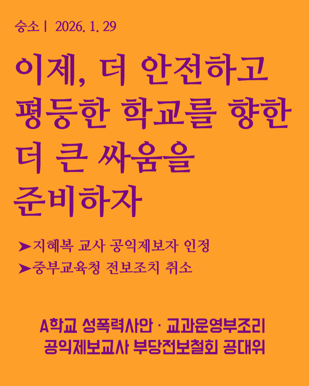[A학교공대위 | 취재요청서] 지혜복 교사 투쟁 2년, 부당전보 취소 소송 1심 선고 입장 발표 기자회견