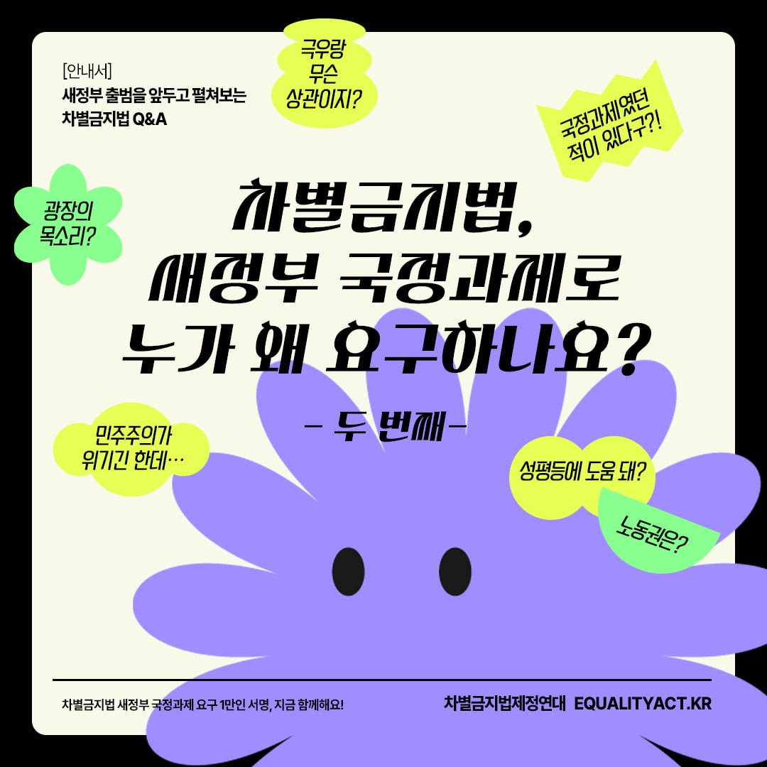 [카드뉴스] ❝차별금지법, 새정부 왜 국정과제로 요구하나요?❞ 새정부 출범을 앞두고 펼쳐보는 차별금지법 Q&A - 두 번째