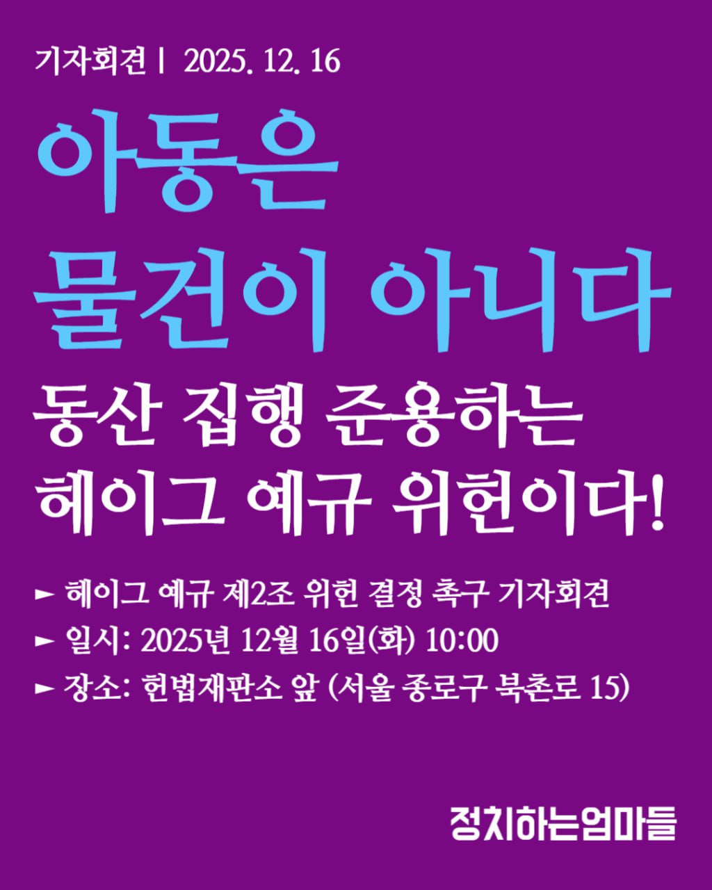 [취재요청서] 헤이그 예규 제2조 위헌 결정 촉구 기자회견 "아동은 물건이 아니다! 동산(動産) 집행 준용하는 헤이그 예규 위헌이다."