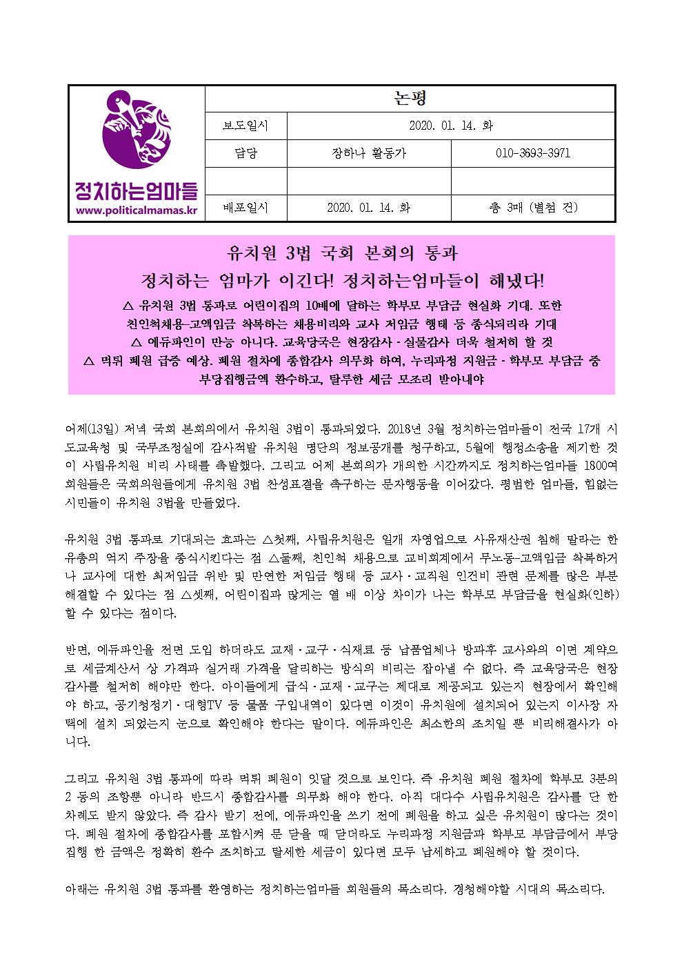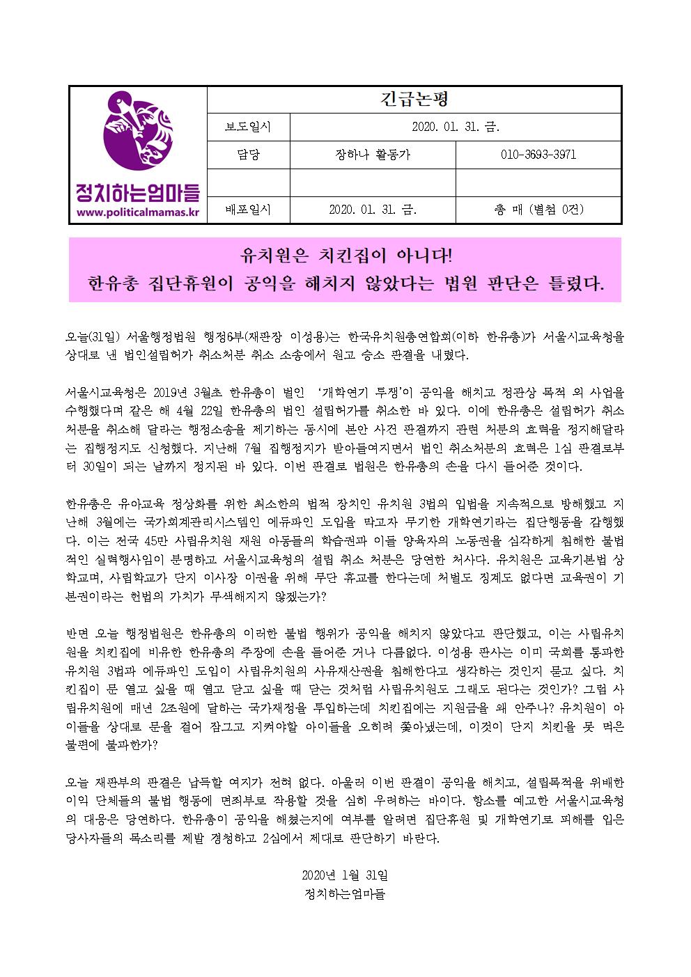 유아교육 관련 사립유치원 비리 대응 활동입니다....