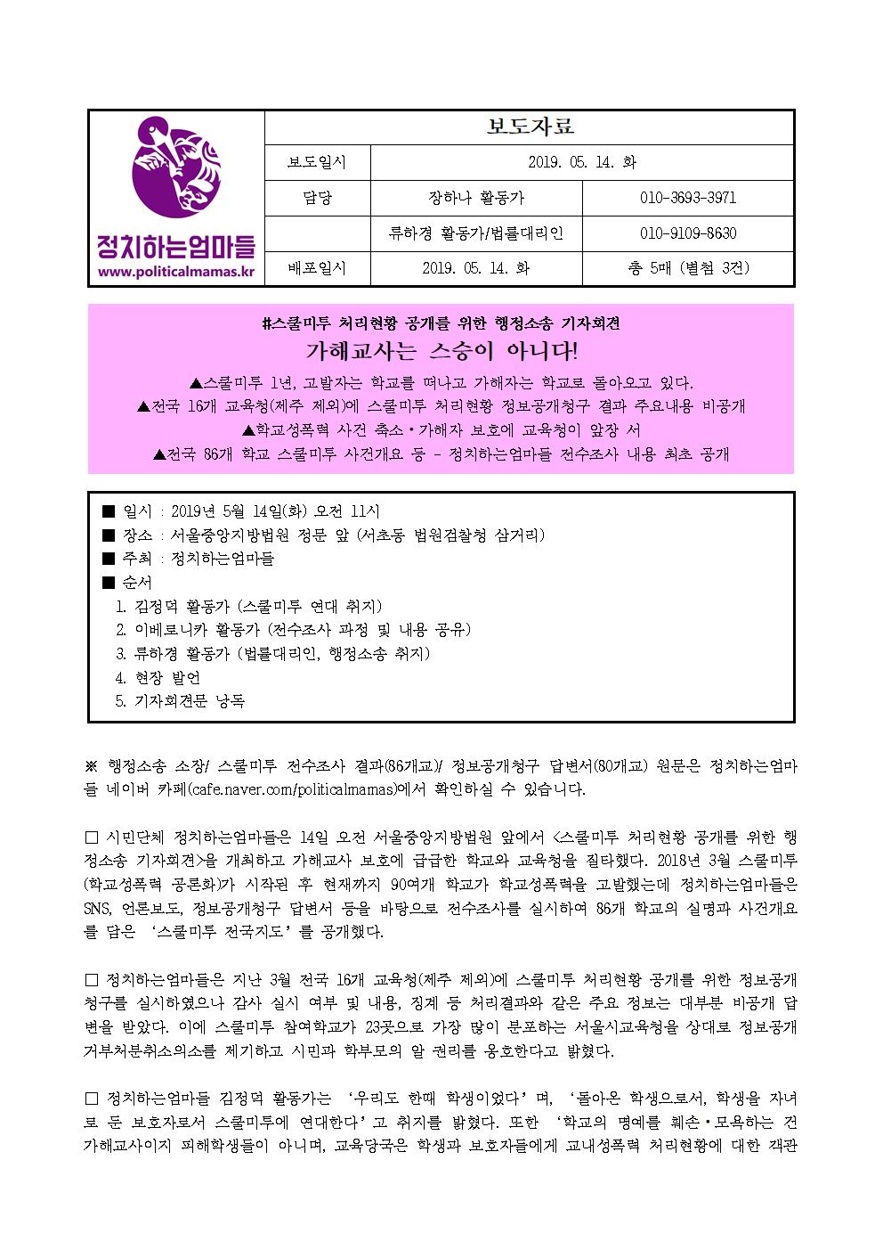 ✦ 정치하는엄마들 ‘스쿨미투 처리현황 공개를 위한 행정소송’ 경과