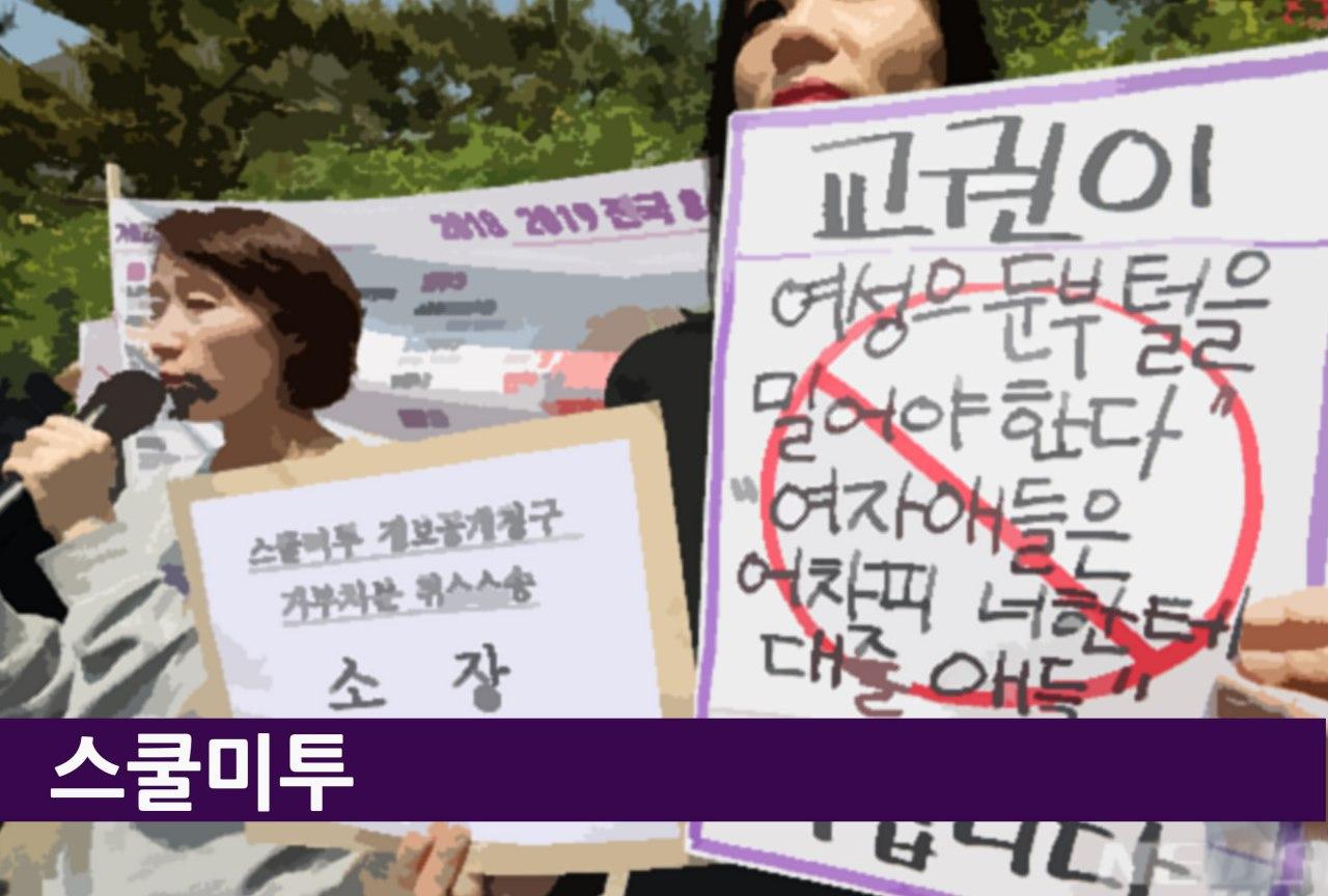 오랫동안 교사들이 저질러온 성폭행, 성추행, 성희롱, 성차별 발언들이 만연한 교육현장의 추악한 민낯은 한국 사회에 큰 충격을 주었습니다. 2018년, 2020년 국정감사에서 ‘스쿨미투’가 언급될 만큼 피해 학생들의 제보와 폭로가 이어져 사태의 심각성이 입증되었지만, 처벌은 미온적이고 가해교사들은 교단으로 부메랑처럼 복귀하는 등 교육 현장은 개선되지 않았습니다.