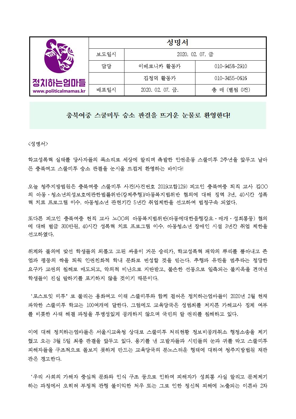 스쿨미투팀 참가신청과 활동에 대한 문의는 정치하는엄마들 사무국으로 보내주세요.