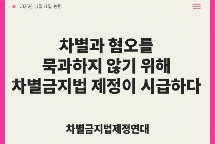 [차별금지법제정연대 논평] 차별과 혐오를 묵과하지 않기 위해 차별금지법 제정이 시급하다